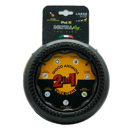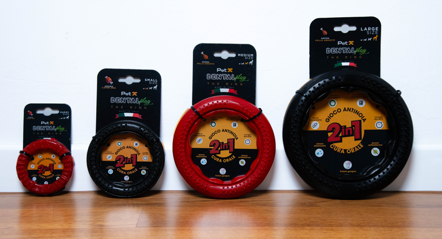 DENTAL PLAY è una linea di giochi masticativi ANTI NOIA 2 IN 1 pensati per accompagnare il tuo cane nei momenti di solitudine o di gioco condiviso, offrendo allo stesso tempo un valido supporto per la cura quotidiana dell’igiene orale.