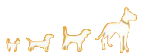 Disponibile in 4 TAGLIE per tute le razze (puppy/small/medium/large)